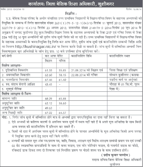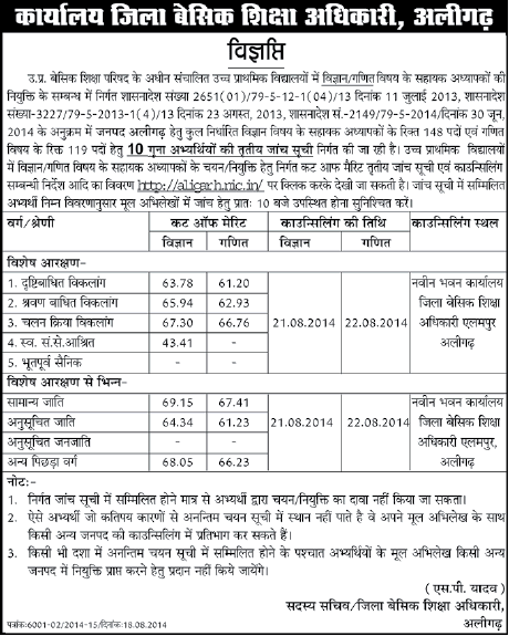 3rd कॉउंसलिंग —21 एंड 22 अगस्त