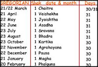 Saka Calendar is said to have begun from the vernal equinox of A.D. 79. The usage of the Calendar began from aka Era 1879, Chaitra 1, which corresponds to A.D. 1957 March 22. The Saka Calendar is similar to the Gregorian calendar on the terms that even the Saka calendar has a normal year of 365 days and a leap year has 366 days. In a leap year, an intercalary day is added to the end of Chaitra month of the year. There are 12 months in Saka Calendar which are named as Vaisakha ,Jyestha ,Asadha ,Sravana, Bhadrapada, Asvina , Kartika Margasirsa , Pausa , Magh, Phalgura ,Chaitra.
