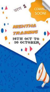 निष्ठा प्रशिक्षण प्रदेश में 16 october 2020 से दीक्षा पोर्टल के माध्यम से शुरू किया जा रहा है । इस क्रम में पहला module 16 अक्टूबर से live किया जा रहा है, दूसरा एवं तीसरा module क्रमवार 20 october तक live कर दिए जाएंगे।